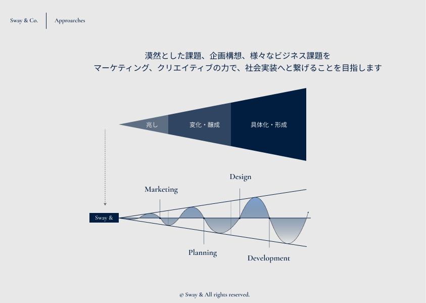構想段階のアイデアを具体化、プロセスを整理し、事業化実現までの支援を伴走します。 【課題】 ・アイデアはあるが、具体化が難しい ・社内リソースが足りていない ・既存事業と並行して考えているが、知見が足りない 【価値提供】 ・ブランド構築 ・プロセスデザイン ・エクスペリエンスデザイン ・プロジェクトマネジメント